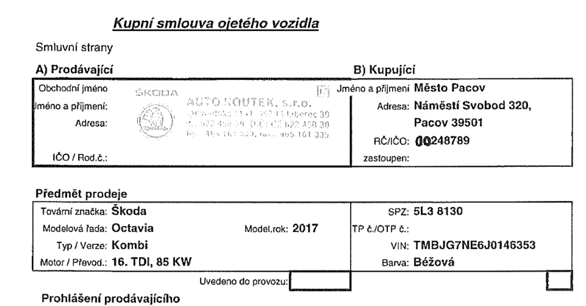 Městský úřad v Pacově nakupuje jako služební vozy ojetiny? Nabízí se otázka, zda je koupě ojetého vozu po záruce vyhodná, když za srovnatelnou cenu lze například pořídit vůz obdobné kategorie se zárukou 7 let (viz níže Octavia vs. Kia Ceed) nebo obdobnou ojetinu o 51 000 Kč (20%) levněji (viz Caddy níže)?